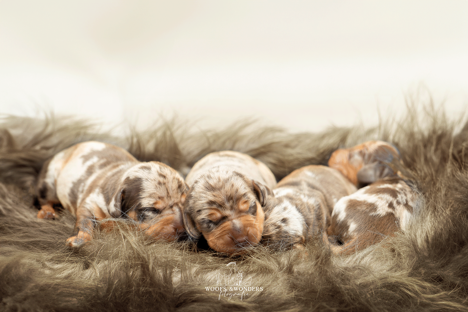 ''Anke heeft ons dwergteckeltje Soof met haar 4 pupjes prachtig vast weten te leggen op beeld. Onze Soof voelde zich helemaal op haar gemak met Anke en liet dan ook echt alles toe. Het resultaat mocht er dan ook wezen. Anke, nogmaals bedankt! Een mooie blijvende herinnering waarmee wij erg blij zijn!''