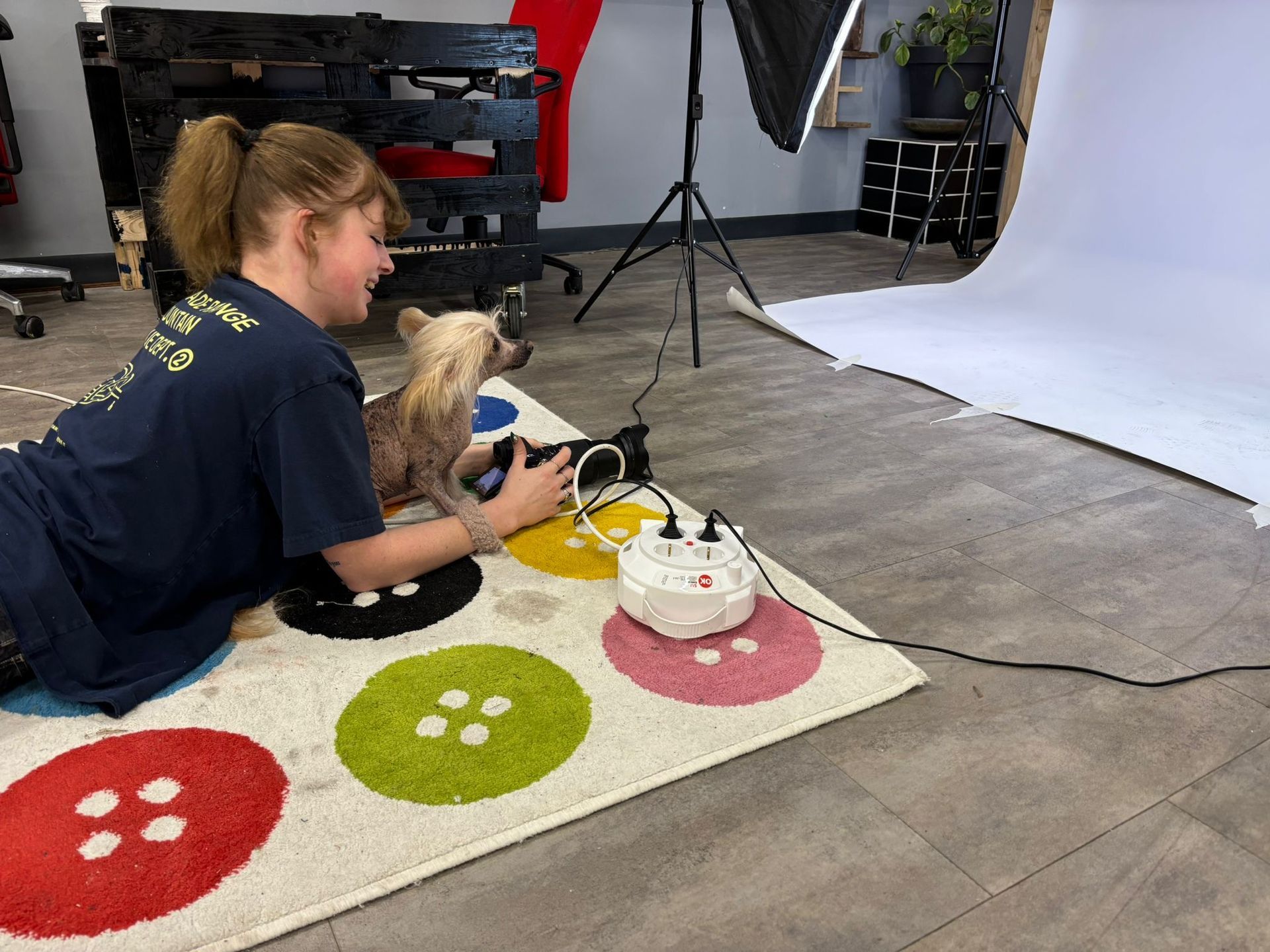 Hoi! Mijn naam is Anke Rooijakkers, ik ben 21 jaar en ik ben woonachtig in Eindhoven. Naast dat ik dieren fotografeer ben ik ook ontzettend druk bezig met studeren. Al jaren lang werk ik tussen de honden, en mijn liefde voor deze dieren groeit alleen maar meer! Ook heb ik thuis 2 honden rond lopen, waaronder mijn eigen Olaf (te zien op deze foto). Ik kijk er enorm naar uit om ook u en uw vriendjes te ontmoeten!